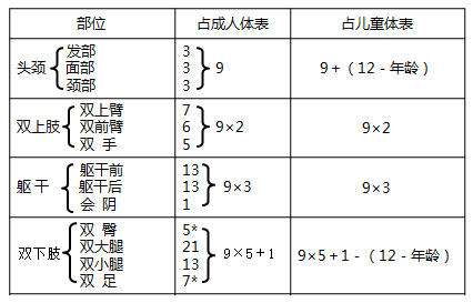 (1)手掌法:五指并拢,单掌面积即占全身体表面积的1%
