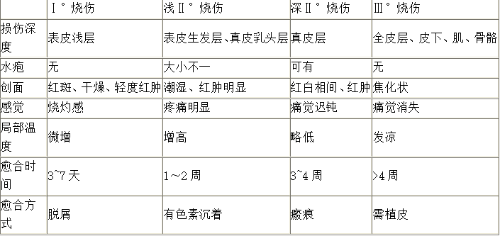烧伤深度的识别(三度四分法)(☆☆☆):