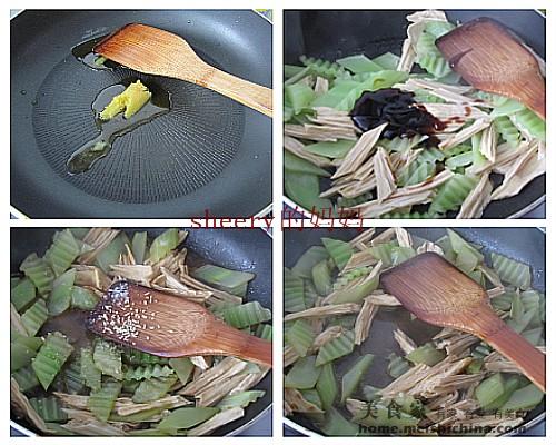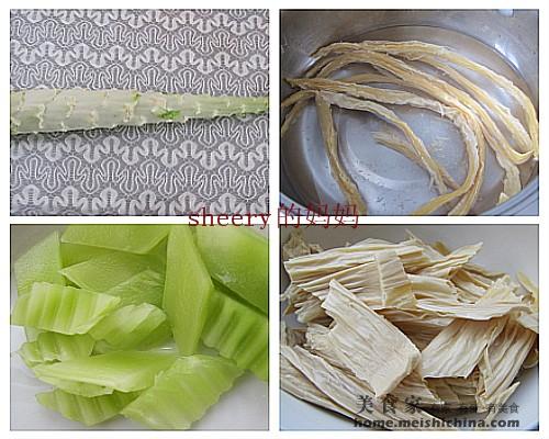 原料:莴苣 腐竹 鸡油 蚝油 糖 盐 鸡精