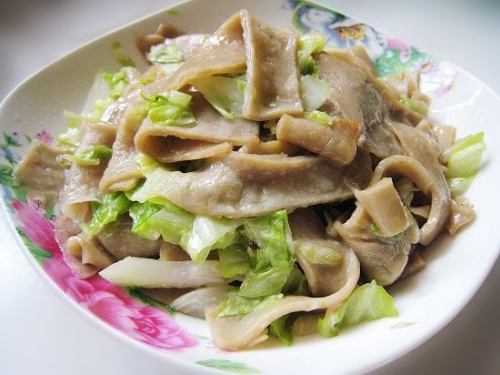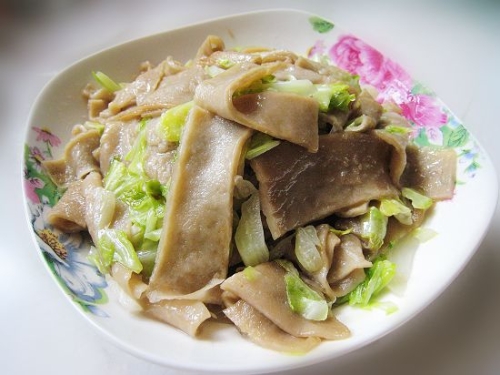 买来的粉皮煮鱼还行,炒起来的话凉了就硬硬的,还是自己做的好,软软的,加了鸡蛋味道也好很多。