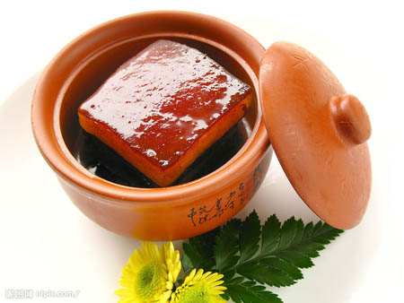 苏东坡喜食猪肉,元丰三年贬官黄州时,曾逗趣写下《猪肉诗》一首:“黄州好猪肉,价贱如粪土;富者不肯吃,贫者不解煮,慢著火,少著水,火候足时它自美。每日起来打一碗,饱得自家君莫管。”元右四年,苏轼为杭州地方官时,筑堤建桥,疏通西湖。百姓为了感谢这位太守,抬猪肉,挑火酒来慰劳。苏轼叫家人把猪肉切成方块用他的烹调方法连酒一起烧制,分给民工。民工吃后都感到此肉酥香味美,就把它称为:“东坡肉”。