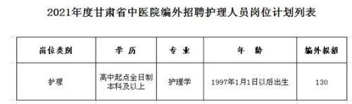 6、具备岗位要求的其他条件(见下《2021年度甘肃省中医院编外护理招聘人员岗位计划列表》)。