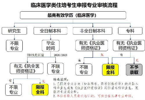 2.本科专业已限定专业方向的本科毕业生(如全科、儿科、麻醉、医学影像、耳鼻咽喉等),申报专业限定为原本科专业或全科医学科。