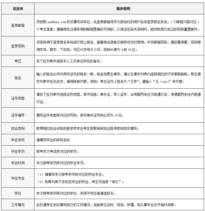 2018全国医用设备使用人员业务能力考评考生填表说明