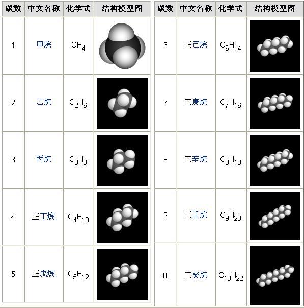 异辛烷(2,2,4-三甲基戊烷)的结构式。异辛烷是汽油抗爆震度的一个标准,其辛烷值定为100。对于一些结构简单或者常用的烷烃,还经常用俗名。如,习惯上直链烷烃的名称前面加“正”字,但系统名称中并没有这个字。在主链的2位有一个甲基的称为“异”,在2位有两个甲基的称为“新”。这虽然只适合于异构体少的丁烷和戊烷,出于习惯还是保留了下来,甚至给不应该叫“异”的2,2,4-三甲基戊烷也冠上了“异辛烷”的名字。
