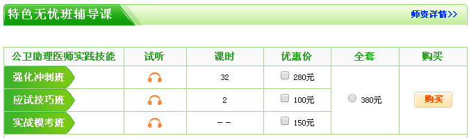 医学教育网2017公卫助理医师实践技能特色无忧班辅导包含强化冲刺班、应试技巧班、实战模考班三大班次。针对每个考生的不同学习状况,进行有针对性地辅导。