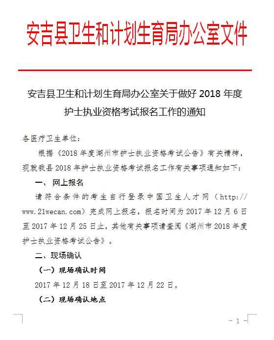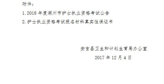 根据《2018年度湖州市护士执业资格考试公告》有关精神,现就我县2018年护士执业资格考试报名工作有关事项通知如下:
