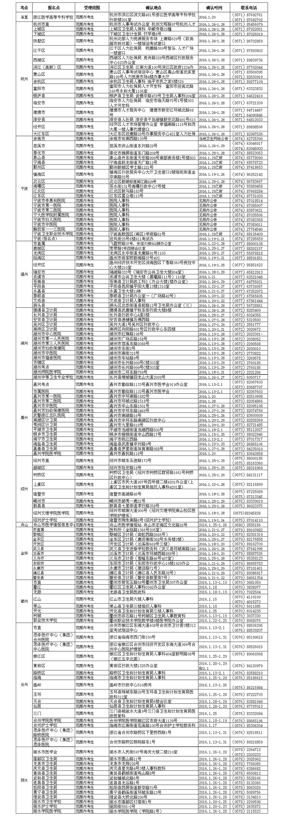 2016年浙江护士考试现场审核时间及地点通知:(点击看大图)