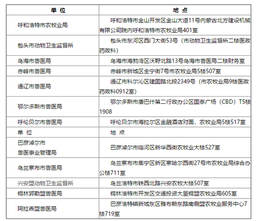 五、资格证书领取经审核、公示符合授予条件的考生及申请补发证书人员,由内蒙古自治区农牧厅颁发执业兽医资格证书。资格证书领取时间为2019年4月1日至30日(节假日休息)。证书领取地点为考生选定的证书领取地点(补发证书人员证书领取地点为申请地),需本人凭身份证到当地领取。
