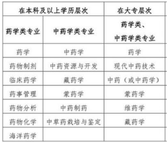 报考条件中要求的 “药学类、 中药学类专业”,按照国务院 学位委员会、教育部印发的《学位授予和人才培养学科目录设置 与管理办法》《普通高等学校高等职业教育(专科)专业设置管 理办法》和《学位授予和人才培养学科目录》《普通高等学校本 科专业目录( 2012 年)》《普通高等学校高等职业教育(专科) 专业目录( 2015 年)》等规定,对照学科目录来界定。