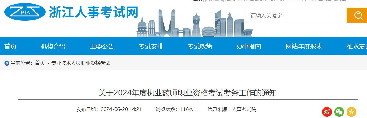 根据人社部人事考试中心《关于 2024 年度执业药师职业资 格考试考务工作的通知》(人考中心函〔2024〕29 号)的要求, 现结合我省实际,将此项考试有关考务工作事项通知如下。