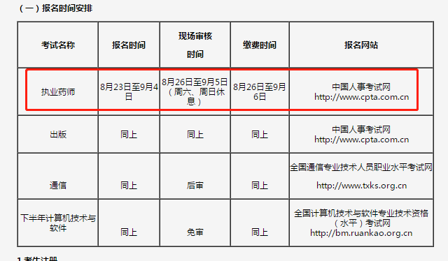 请执业药师和出版专业技术人员职业资格考试的报考人员详细阅读全国专业技术人员资格考试服务平台(网址: http://www.cpta.com.cn.)报名系统里的《考生报考指南》(见附件4)。