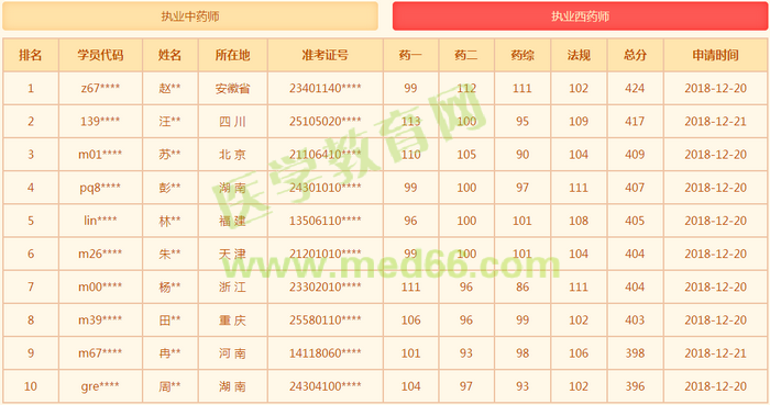 西药执业药师高分学员榜单:(记录还在持续刷新中,快来申请!)
