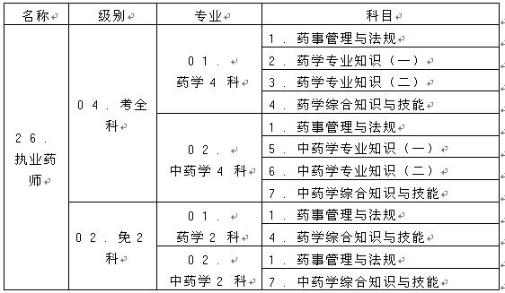 四、全国执业药师资格考试名称、专业、级别、科目代码表
