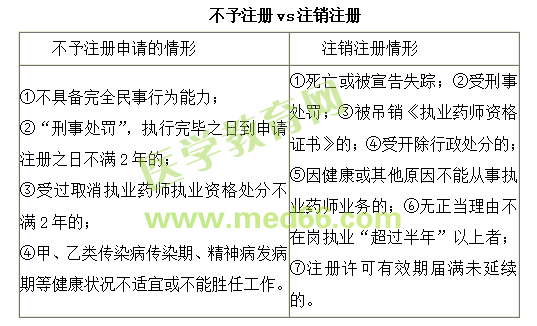 为了帮助广大执业药师考生顺利考过执业药师,医学教育网小编为大家整理出了药事管理与法规的考点“不予注册、注销注册”,方便大家查漏补缺,相关内容如下: