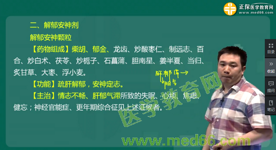 考点13.某女,49岁。近1年月经周期紊乱几天前因情志抑郁,遂致失眠、心烦、焦虑、健忘。证属情志不畅、肝郁气滞,宜选用的成药是:解郁安神颗粒
