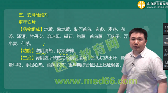 考点25.某女,48岁。近期出现月经前后不定期,伴烘热出汗、眩晕耳鸣、手足心热、烦躁不安。医师诊为更年期综合征,证属肾阴虛;处以更年安片,此因该成药既能滋阴清热,又能;除烦安神