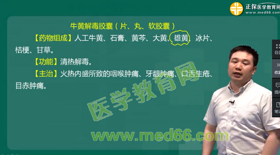 考点34.宜选用牛黄解毒丸的是:某女,25岁,因火热内盛而咽喉肿痛、牙龈肿痛、口舌生疮、目赤肿痛