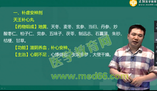 考点39.某男,30岁,半年来,心悸健忘,失眠多梦大便干燥。证属心阴不足,宜选用的成药是:天王补心丸