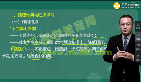 考点1.关于青光眼治疗的说法,正确的是:长期使用卡替洛尔滴眼液可引起近视化倾向
