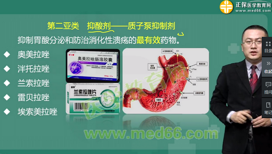 考点7.患者,女,36岁,近期经常上腹灼烧痛、反酸,疼痛多出现在上午10点及下午4点,有时夜间痛醒,进食后缓解,X线钡餐诊断为十二指肠溃疡,该患者宜.使用的治疗药物是:奥美拉唑