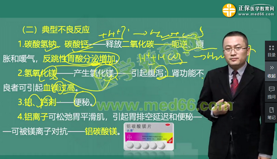 考点22.服用后易出现呃逆、腹胀和暖气,甚至引起反跳性胃酸分泌增加的药物是:复方碳酸钙