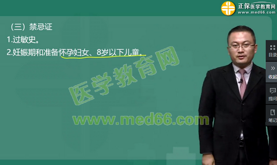 考点29.选择性沉积在牙齿和骨骼中,不可用于8岁以下患儿的药物是:四环素类
