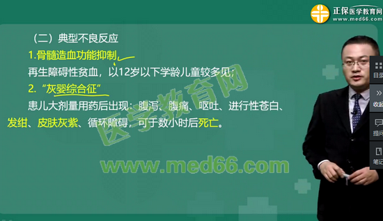 考点30.可致不可逆性的骨髓功能抑制,引起再生障碍性贫血,儿童需慎用的药物是: 酰胺醇类(氯霉素)