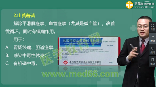 考点41.患者,男,34岁,晨起出现上腹部剧烈疼痛,考虑为胃肠道平滑肌痉挛,适宜该患者使用的治疗药物是:山茛菪碱