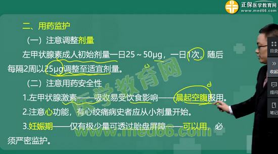 考点44.患者,女,孕8周,诊断为“甲状腺功能减退症"A给予左甲状腺素钠片治疗对该患者的用药指导,错误的是:应于早餐后将一日剂量左甲状腺素钠片一次性用温水送服