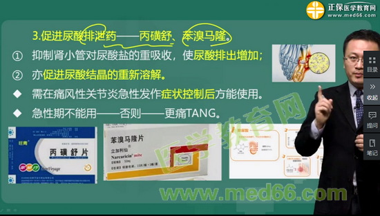 考点45.患者,男,50岁,痛风缓解期,复查血尿酸为560μmol/L.尿液pH值为6.5,分型诊断为尿酸排泄障碍,此时宜使用的促尿酸排泄药是:苯溴马隆