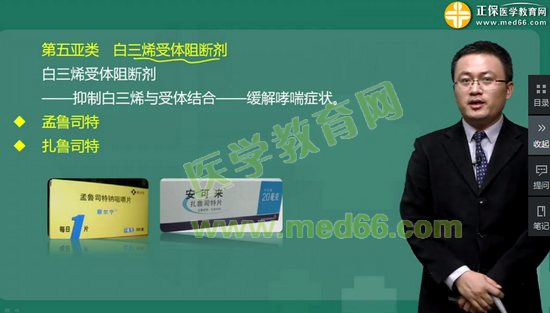 考点47.阻断白三烯受体,起效缓慢,作用较弱,仅适用于轻、中度哮喘和哮喘稳定期控制的药物是:孟鲁司特