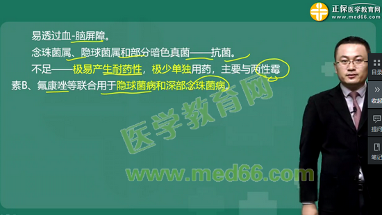 考点52.易产生耐药性,极少单独用药,临床常与两性霉素B合用的抗真菌药物是:氟胞嘧啶
