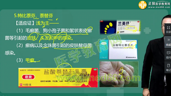 考点53.患者,女,55岁,诊断为“甲癣”, 宣使用的药物是:特比萘芬