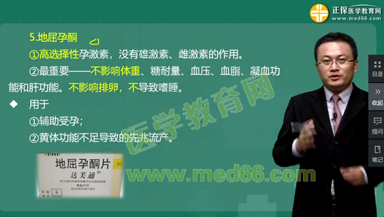考点55.无雌激素、雄激素、肾上腺皮质激素样作用,代谢物没有雌激素活性,可用于黄体功能不足的先兆流产治疗的药物是:地屈孕酮