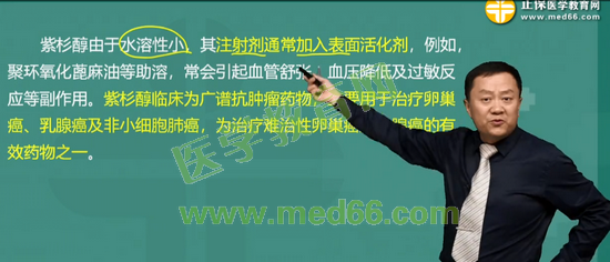 考点2:关于紫杉醇的说法错误的是: 紫杉醇的水溶性大其注射剂通常加入聚氧乙烯麻油等表面活性剂