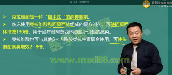 考点4:关于克拉维酸的说法错误的是: 克拉维酸可单独用于治疗耐阿莫西林细菌所引起的感染