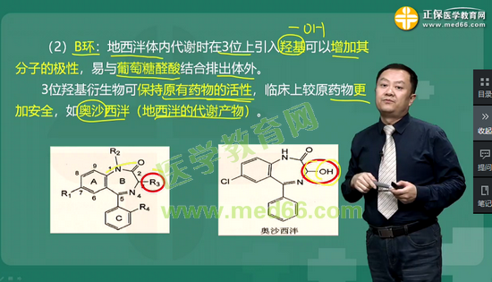 考点22:地西泮与奥沙西泮的化学结构比较,奥沙西泮的极性明显大于地西泮的原因是:奥沙西泮的分子中存在羟基