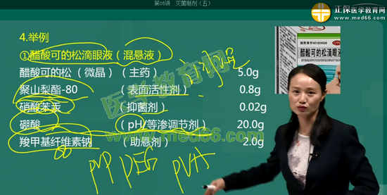 考点23:醋酸可的松滴眼剂(混悬液)的处方组成包括醋酸可的松(微晶)、聚山梨酯80、硝酸苯汞、硼酸、羧甲基纤维素、蒸馏水等