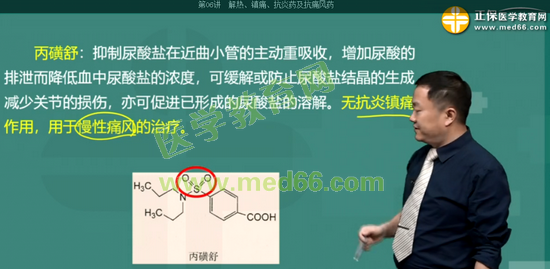 考点31:抑制尿酸盐在近曲小管的主动重吸收,增加尿酸的排泄而降低血中尿酸盐的浓度,与水杨酸盐和阿司匹林同用时,可抑制本品的排尿酸作用的药物是: 丙磺舒