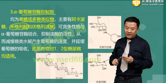 考点37:与二甲双胍合用能增加降血糖作用的α-葡萄糖苷酶抑制剂是: 阿卡波糖