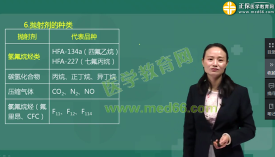 考点50:抛射剂是气雾剂喷射药物的动力,常用作抛射剂的是:四氟乙烷(HFA-134a)