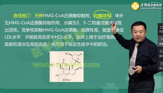 考点67:含有环A基本结构,临床上用于治疗高胆固醇血症和混合型高脂血症的天然的前药型HMG-CoA还原酶抑制剂是:洛伐他汀