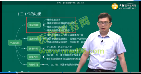 考点2.脏腑经络功能减退,医学教育网整理血液生成不及,运行迟缓,水液在体内潴留等病变,与气机功能失常密切相关的是推动作用。