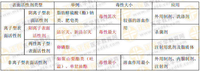 重点10:液体制剂的表面活性剂★★:(如下图)