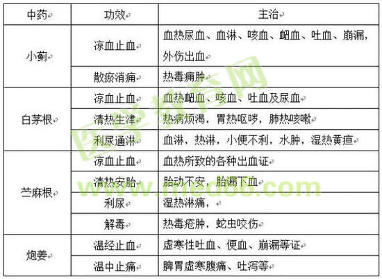知识点一:止血药之小蓟、白茅根、苎麻根、炮姜