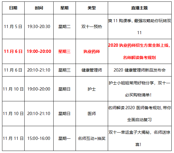1、11月5日-11日期间有多场免费直播课,如下安排: