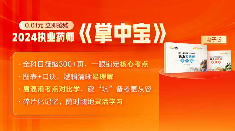2024执业药师《掌中宝》,多次再版并品质升级,作为贯穿整个备考周期的实用工具书,一直备受药考生的喜爱,入选<医学教育网资料喜爱度榜单> 推荐指数★★★★★。