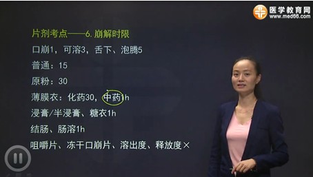 执业药师中药一考点:片剂崩解时限记忆口诀(钱韵文老师)