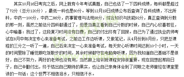 说实在的,听到这句话,当时心里为之一颤,感觉身体瞬间有种无形的力量在推动自己在执业药师考试路上向前进,自己又多了份信心。